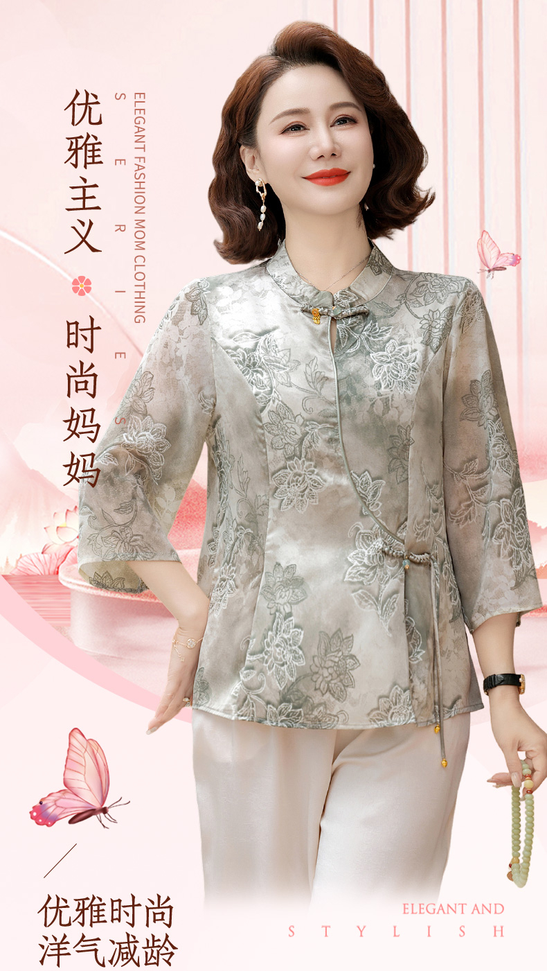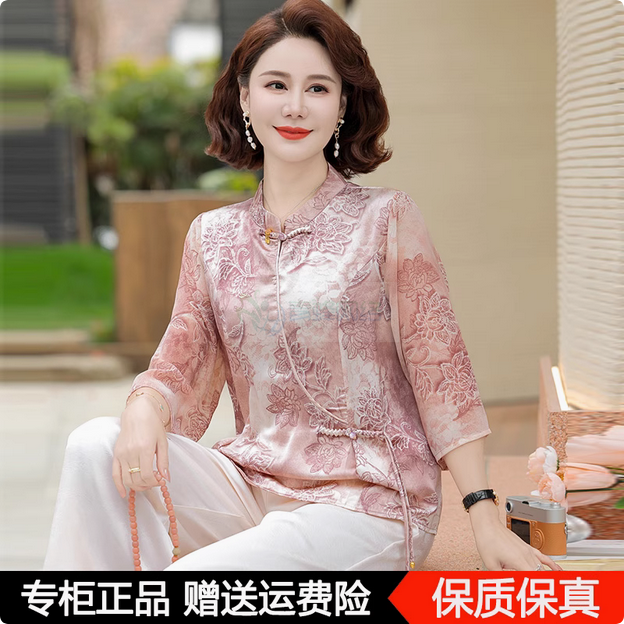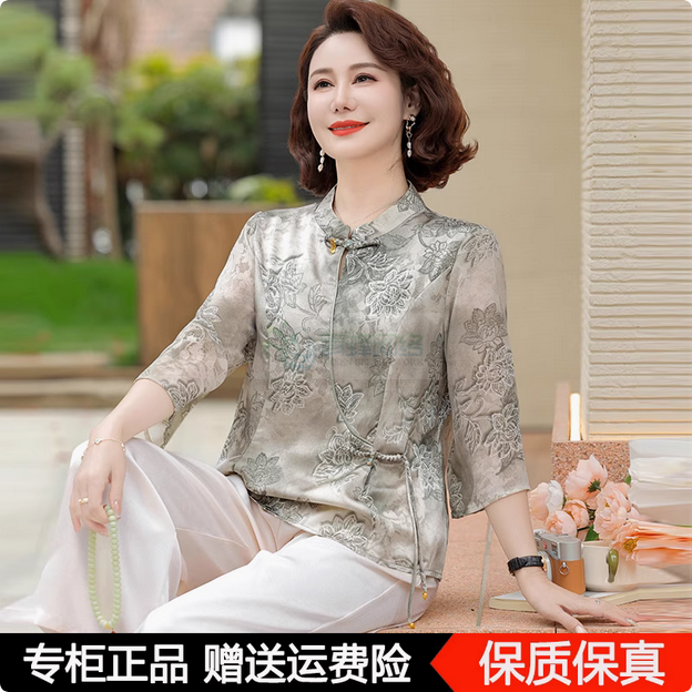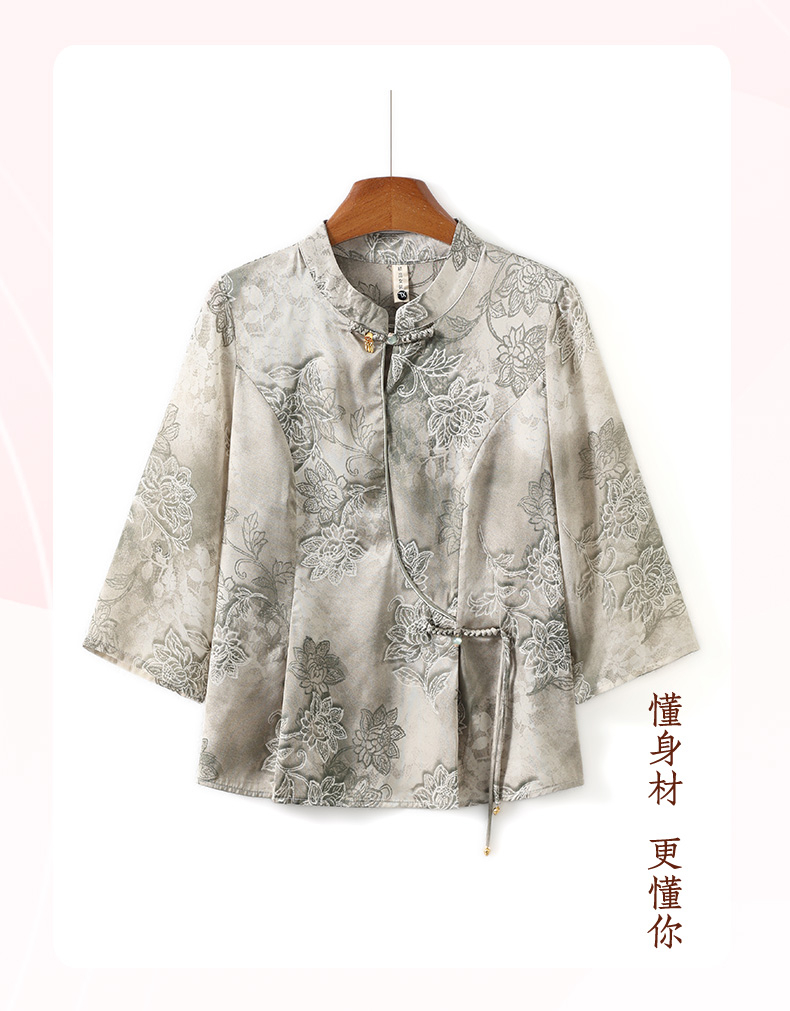 NEXY.CO/奈蔻2025秋新款气质立领银葱拼接三醋酸通勤...