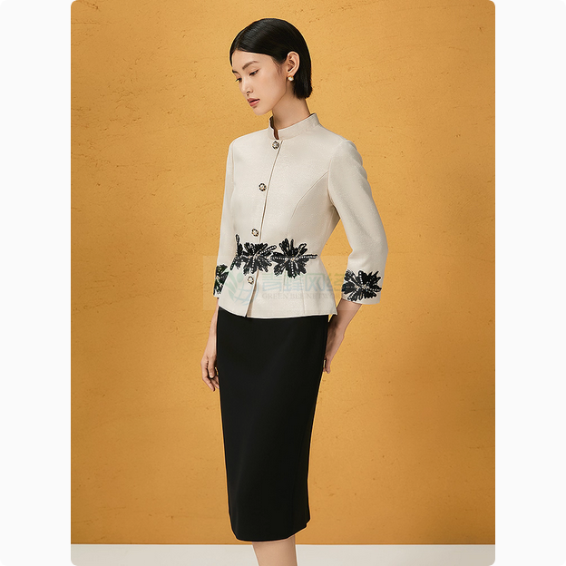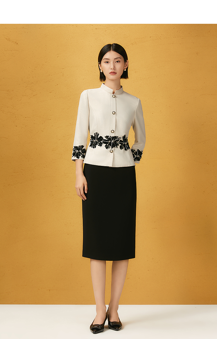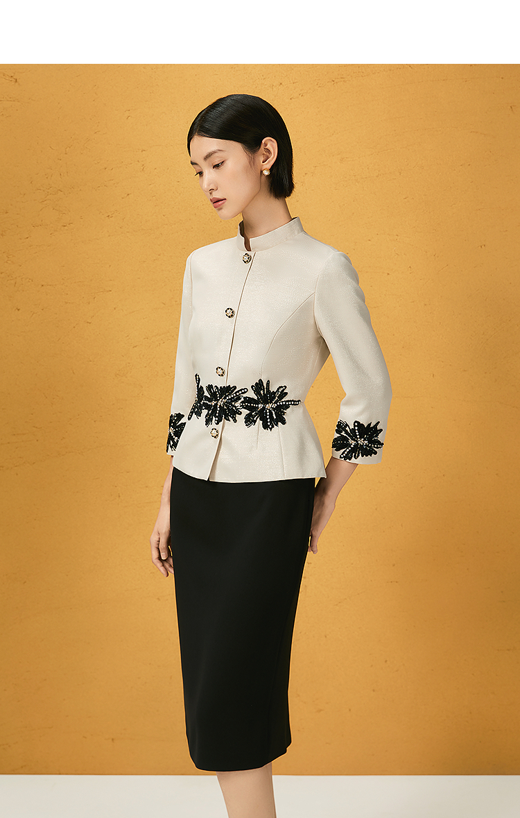 NEXY.CO/奈蔻2025秋新款气质立领银葱拼接三醋酸通勤...