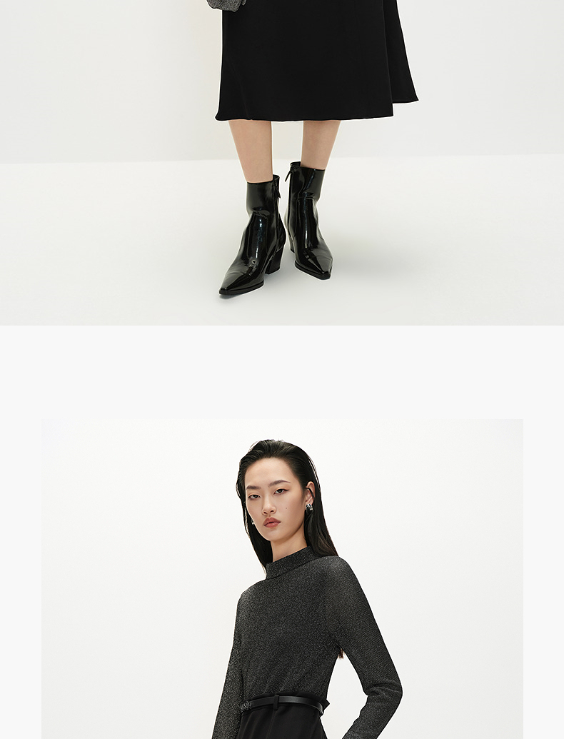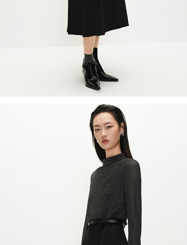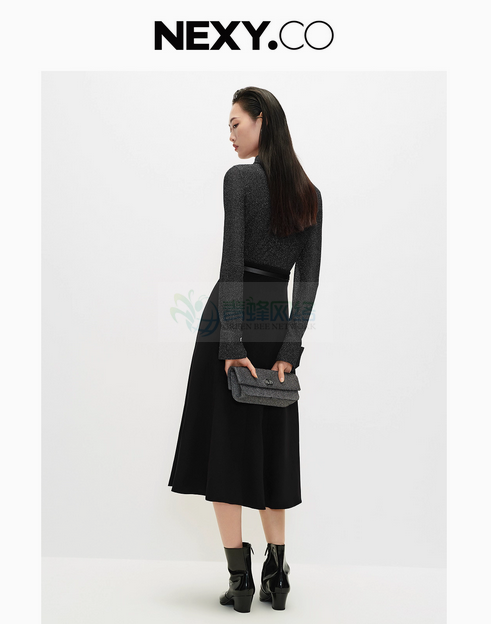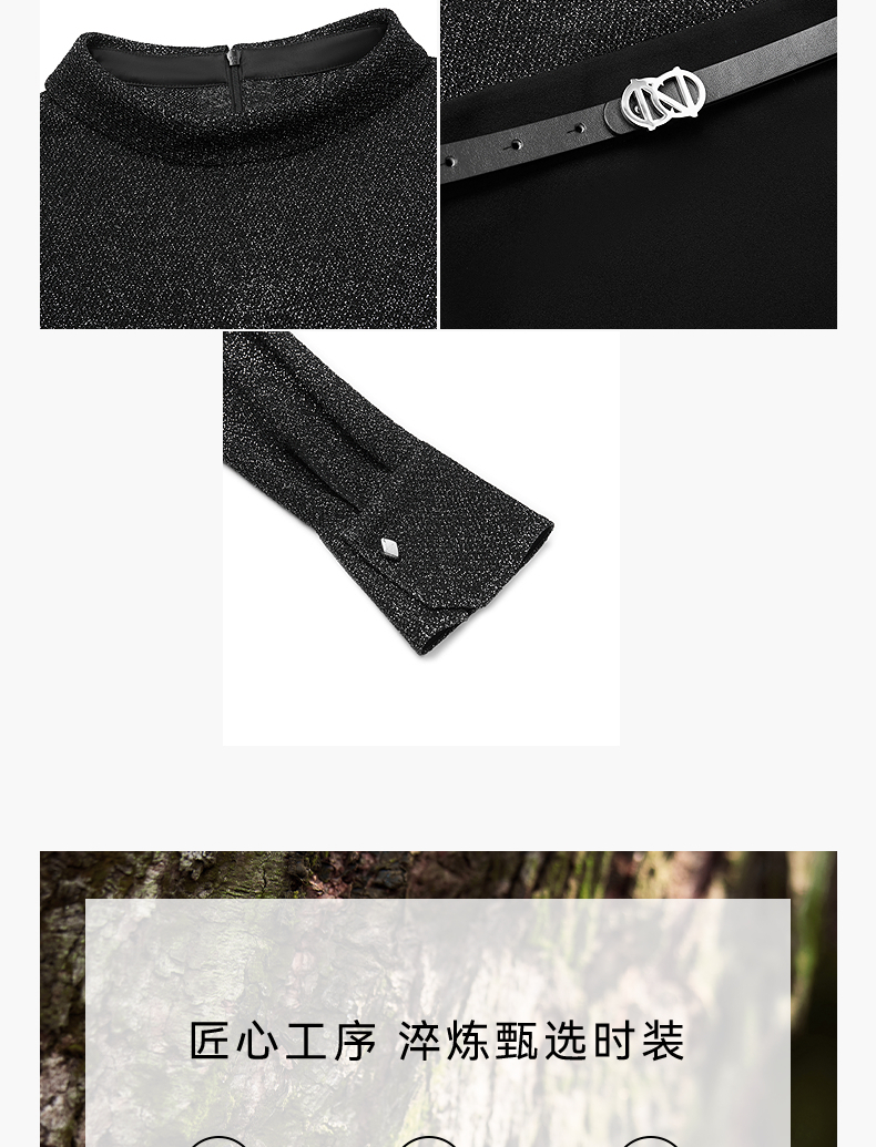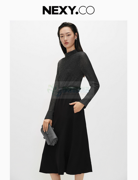NEXY.CO/奈蔻2025秋新款气质立领银葱拼接三醋酸通勤...