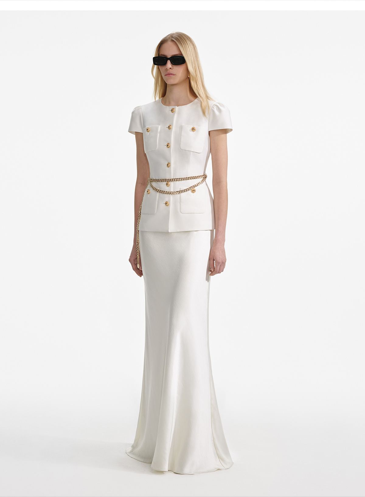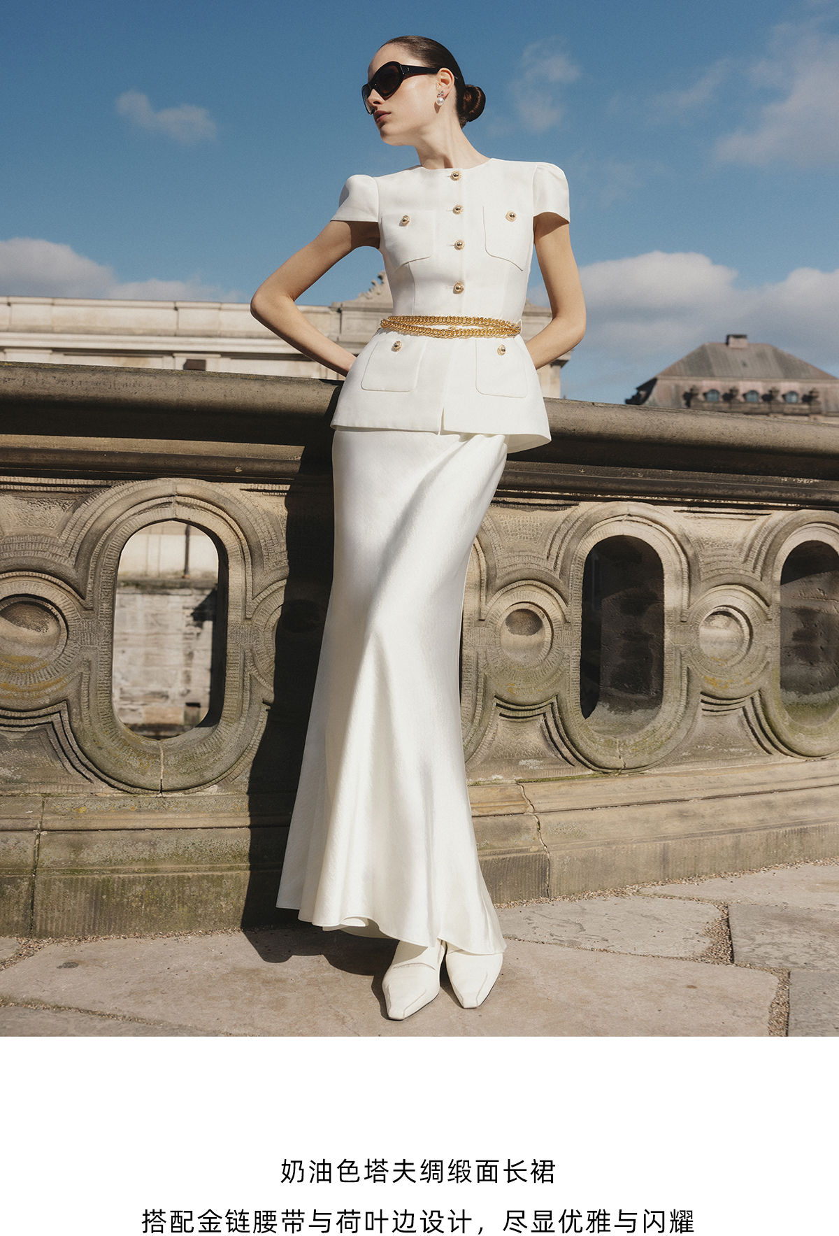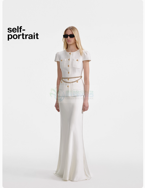 self-portrait 2025早秋新款象牙白塔夫绸小香...