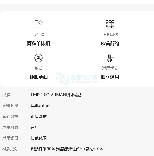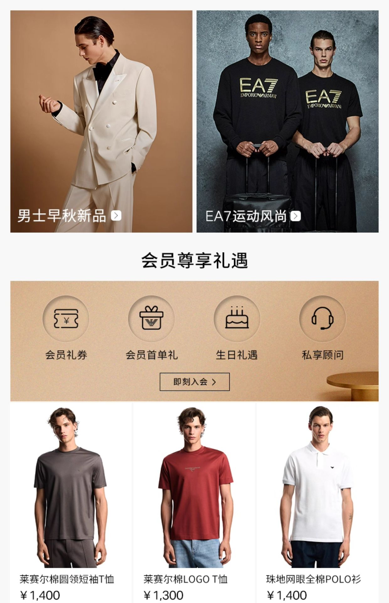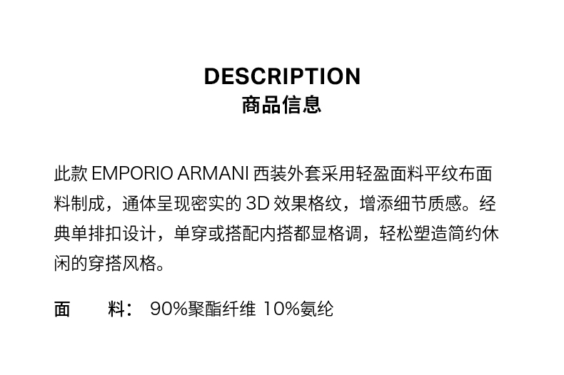 EMPORIO ARMANI/阿玛尼2025秋季新款男士平驳...