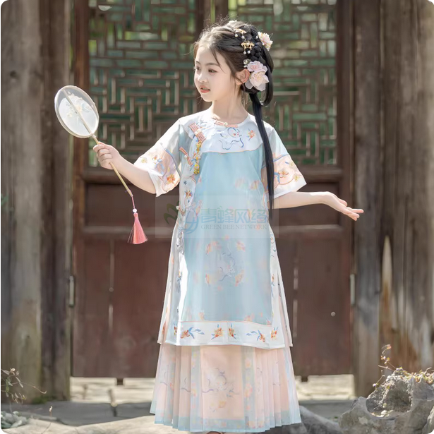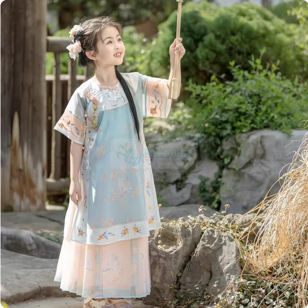 兮兮家夏季新款格格服女童汉服古装清宫新中式中国风套装花笺汐