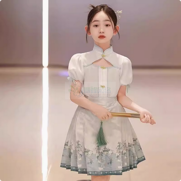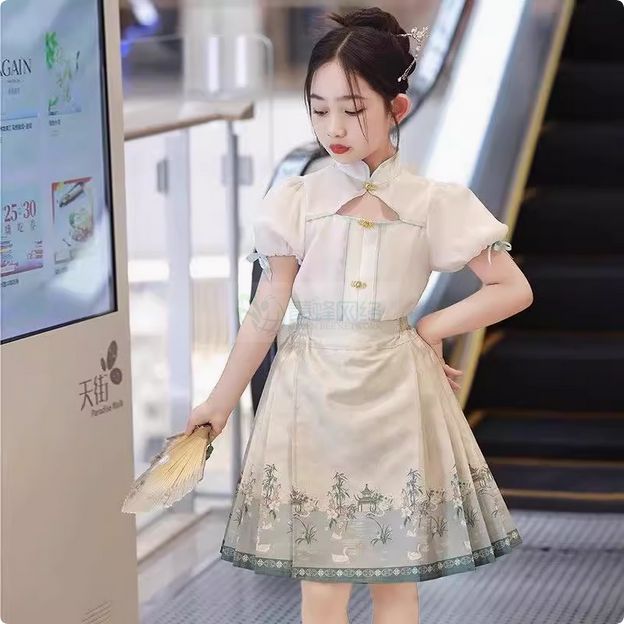 女童马面裙2025新款夏季中式民族风女孩改良汉服中秋时尚两件...